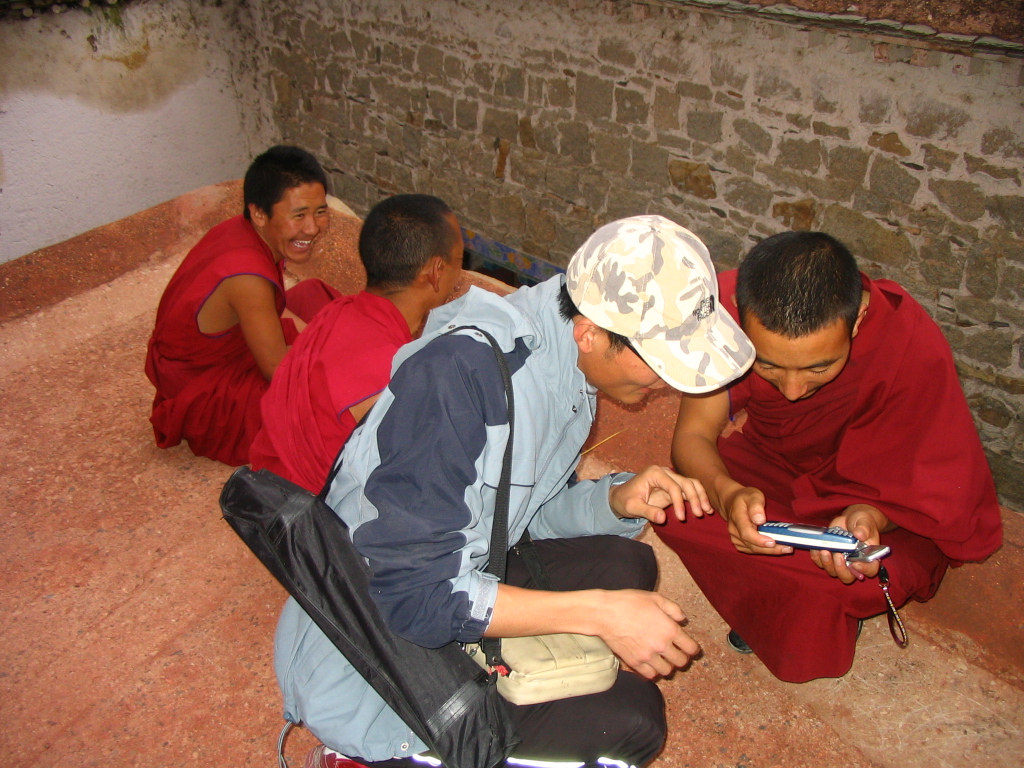 在小昭寺,一个喇嘛对我造型独特的手机发生了兴趣,还与我交换了电话号码