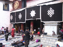 大昭寺门前跪拜的藏人。没有人有闲心来注意我这么一个陌生人的驻足,在他们的世界里,只有他们心目中的神与他们同在
